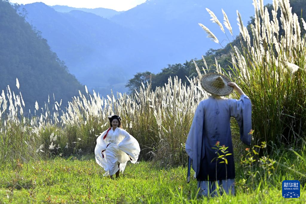 12月25日,游客在猛龙渡一家古风摄影工作室挑选服饰。