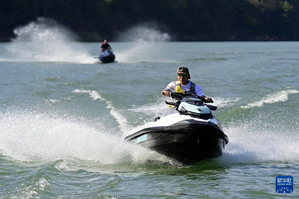 12月25日,水上摩托爱好者在猛龙渡驾驶水上摩托。