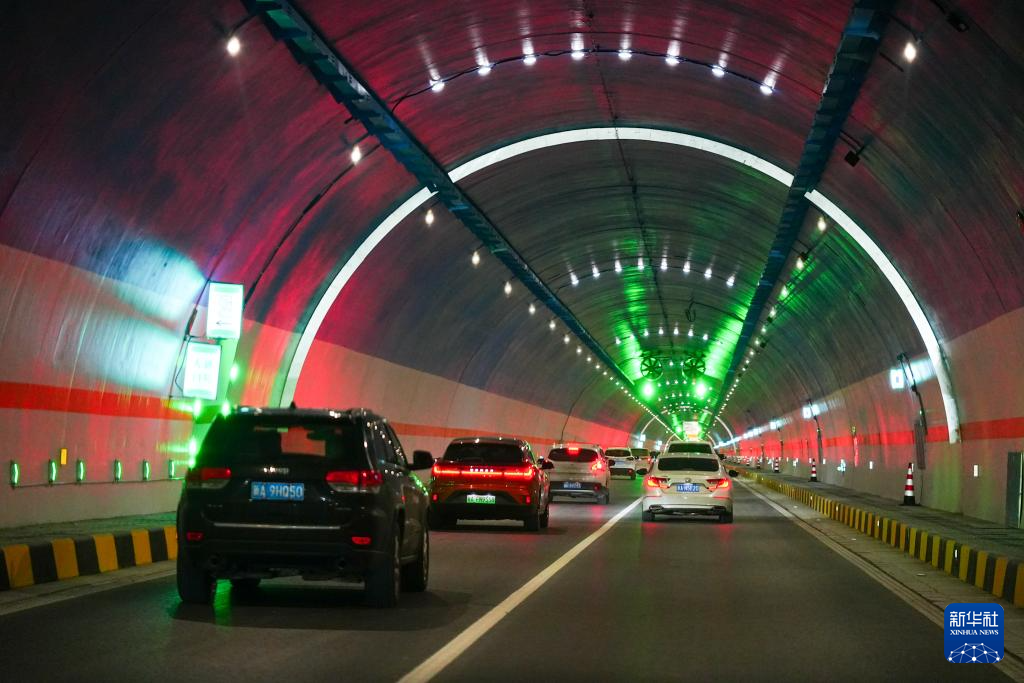12月26日,车辆行驶在乌尉高速天山胜利隧道内。