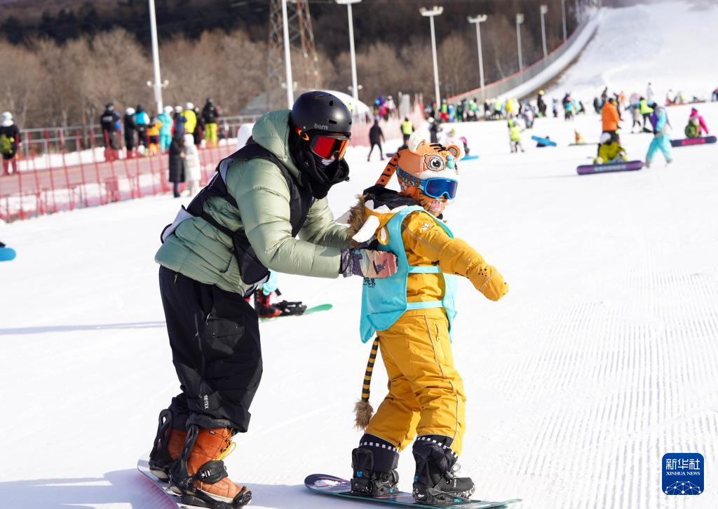 这是2025年12月3日,吉林市中小学生在“冰雪假期”期间,在吉林市纳美山谷度假区体验单板滑雪。