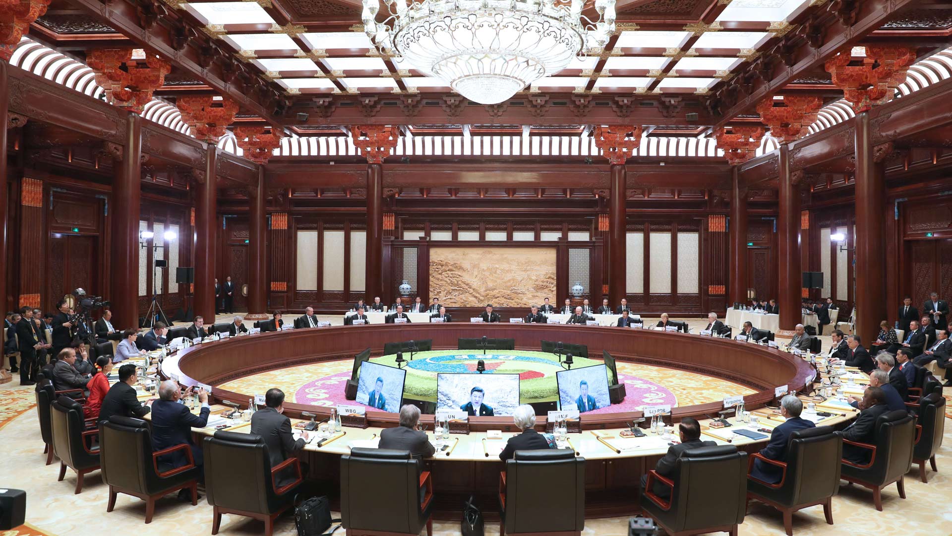 5月15日,“一帶一路”國(guó)際合作高峰論壇圓桌峰會(huì)在北京雁棲湖國(guó)際會(huì)議中心舉行,國(guó)家主席習(xí)近平主持會(huì)議并致開(kāi)幕辭。新華社記者 鞠鵬 攝