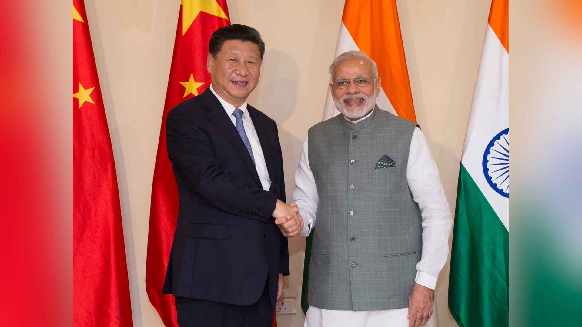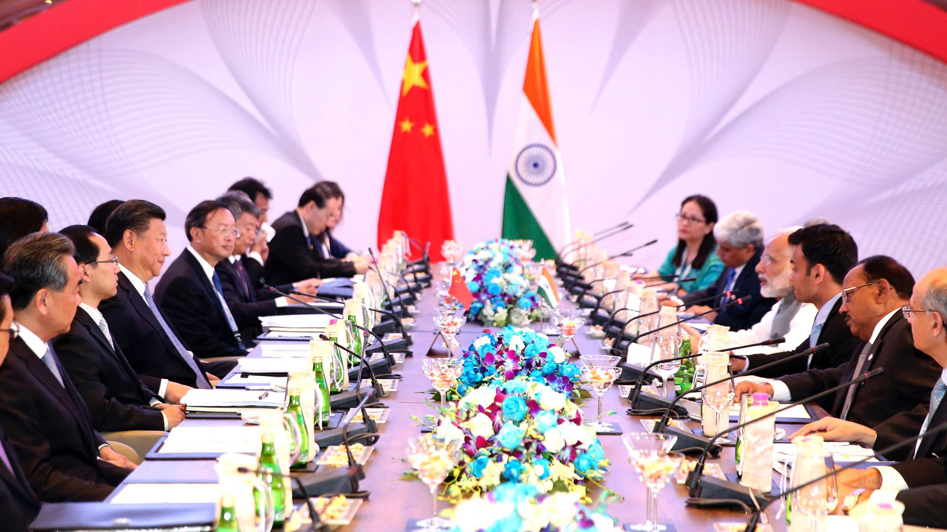 10月15日,國家主席習近平在印度果阿會見印度總理莫迪。新華社記者 丁林 攝
