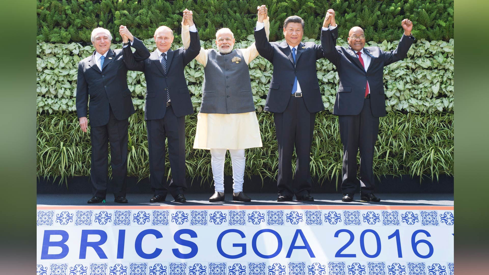 10月16日,金磚國家領(lǐng)導(dǎo)人第八次會晤在印度果阿舉行。中國國家主席習近平、印度總理莫迪、南非總統(tǒng)祖馬、巴西總統(tǒng)特梅爾、俄羅斯總統(tǒng)普京出席。這是5國領(lǐng)導(dǎo)人合影。新華社記者 謝環(huán)馳 攝