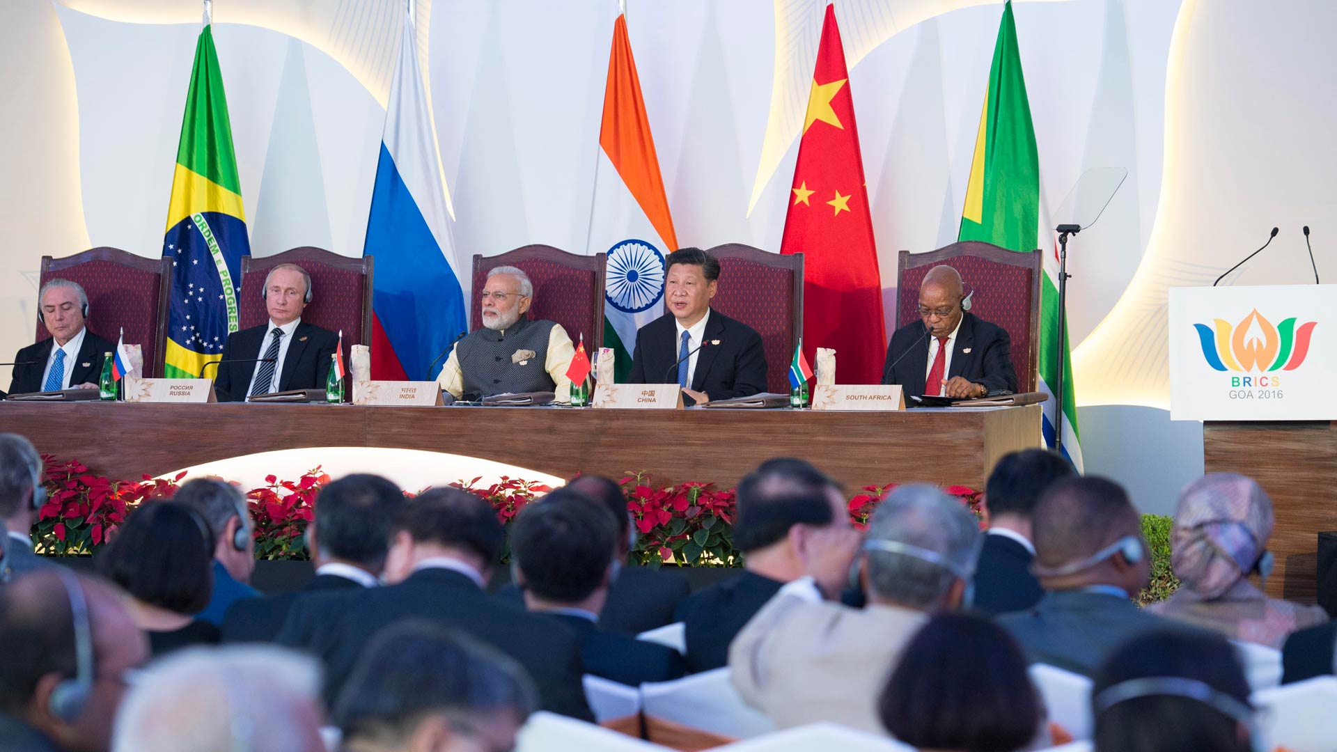10月16日,金磚國家領(lǐng)導(dǎo)人第八次會晤在印度果阿舉行。中國國家主席習近平、印度總理莫迪、南非總統(tǒng)祖馬、巴西總統(tǒng)特梅爾、俄羅斯總統(tǒng)普京出席。習近平發(fā)表題為《堅定信心 共謀發(fā)展》的重要講話。新華社記者 姚大偉 攝