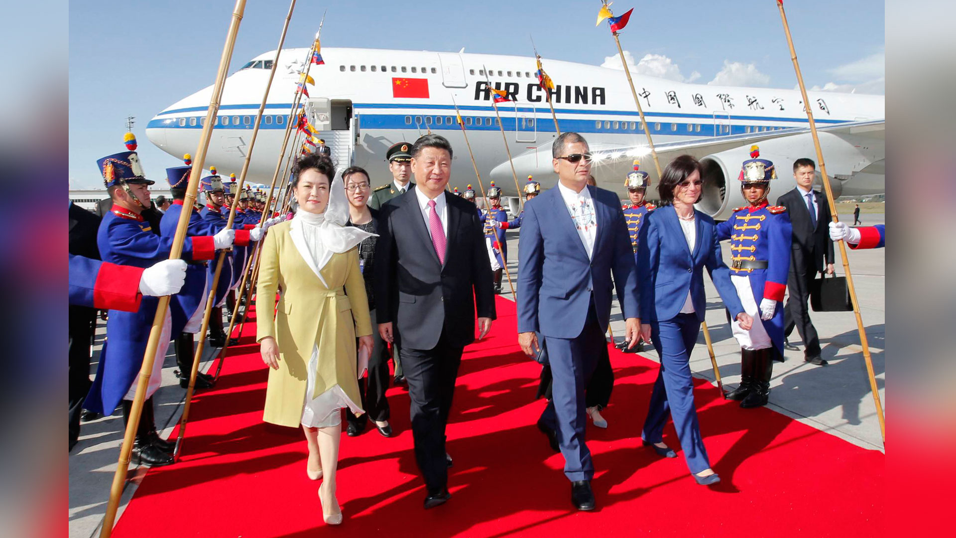 當(dāng)?shù)貢r間11月17日,國家主席習(xí)近平乘專機抵達基多,開始對厄瓜多爾共和國進行國事訪問。厄瓜多爾總統(tǒng)科雷亞和夫人馬勒布等在機場熱情迎接習(xí)近平和夫人彭麗媛。新華社記者 鞠鵬 攝2016-11-18
