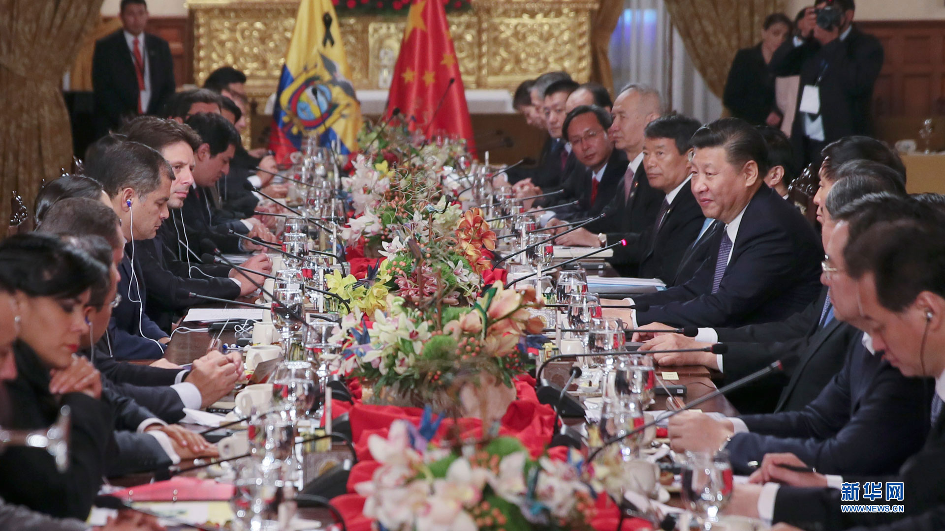 當(dāng)?shù)貢r間11月17日,國家主席習(xí)近平在基多同厄瓜多爾總統(tǒng)科雷亞舉行會談。 新華社記者 鞠鵬 攝2016-11-18