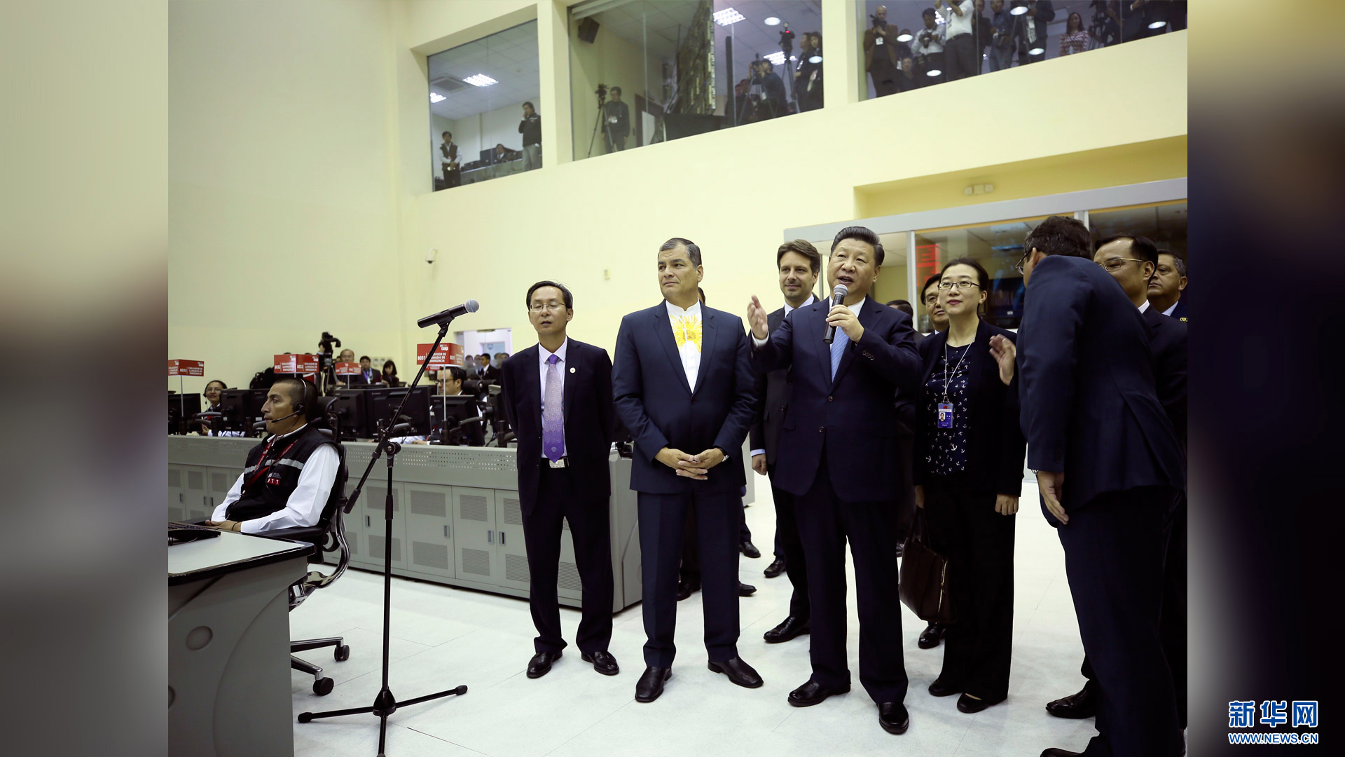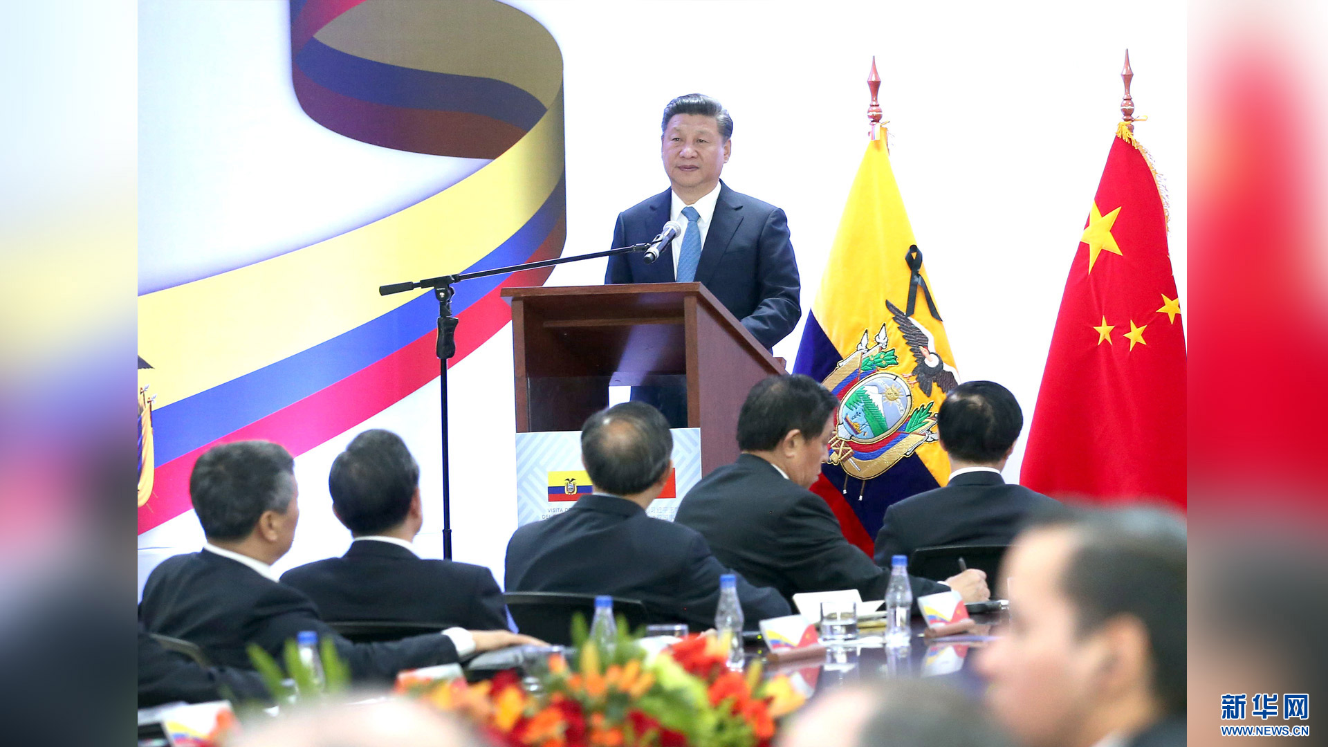 當(dāng)?shù)貢r間11月18日,國家主席習(xí)近平在基多同厄瓜多爾總統(tǒng)科雷亞共同出席中方援建的厄瓜多爾公共安全應(yīng)急指揮中心聯(lián)合實驗室揭牌儀式,喬內(nèi)醫(yī)院奠基、科卡科多-辛克雷水電站竣工發(fā)電視頻連線活動。這是習(xí)近平出席活動后致辭。新華社記者 馬占成 攝2016-11-19