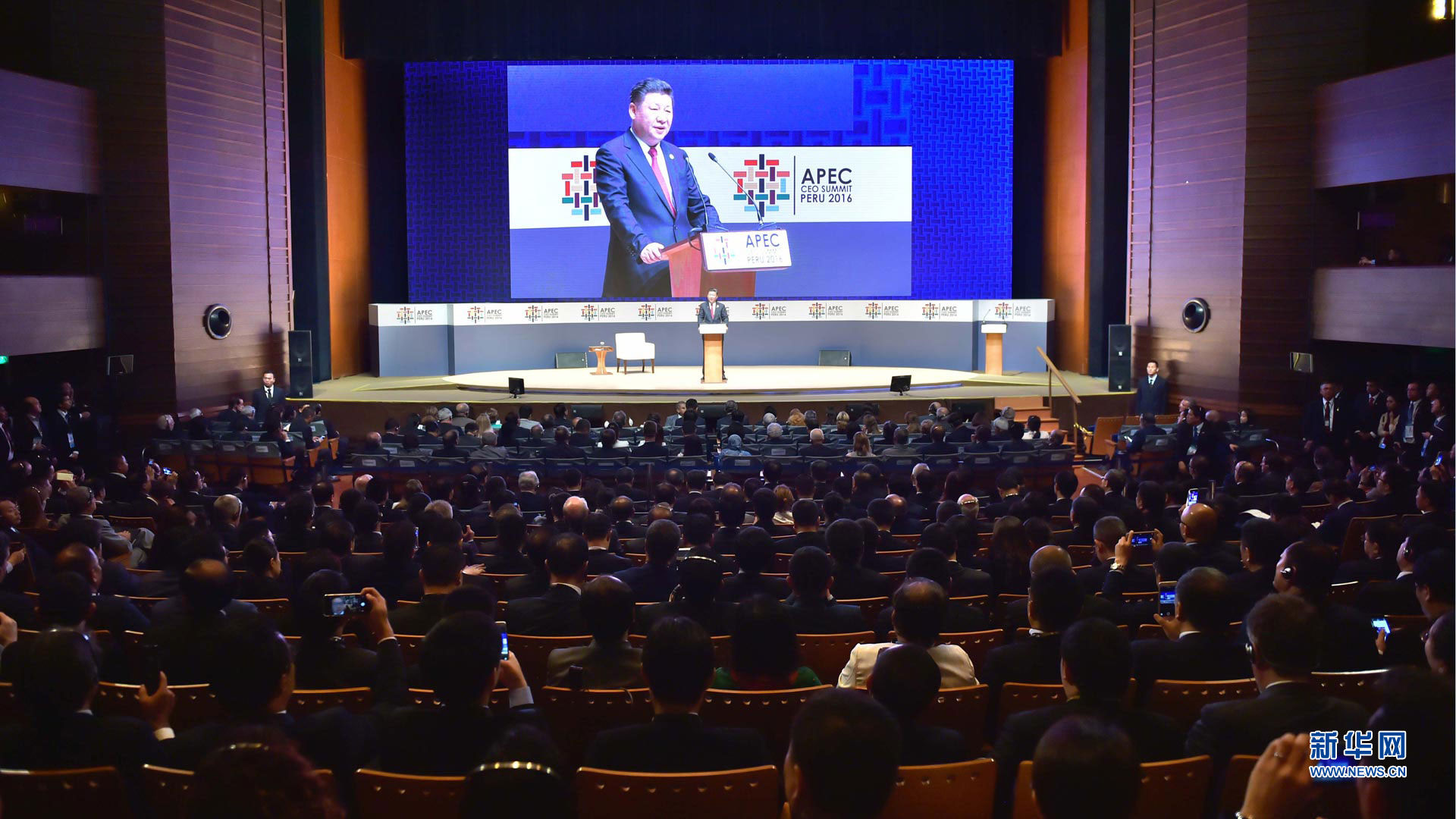 11月19日,2016年亞太經(jīng)合組織工商領(lǐng)導(dǎo)人峰會在秘魯利馬舉行。國家主席習(xí)近平應(yīng)邀出席并發(fā)表題為《深化伙伴關(guān)系 增強發(fā)展動力》的主旨演講。 新華社記者 蘭紅光 攝2016-11-20