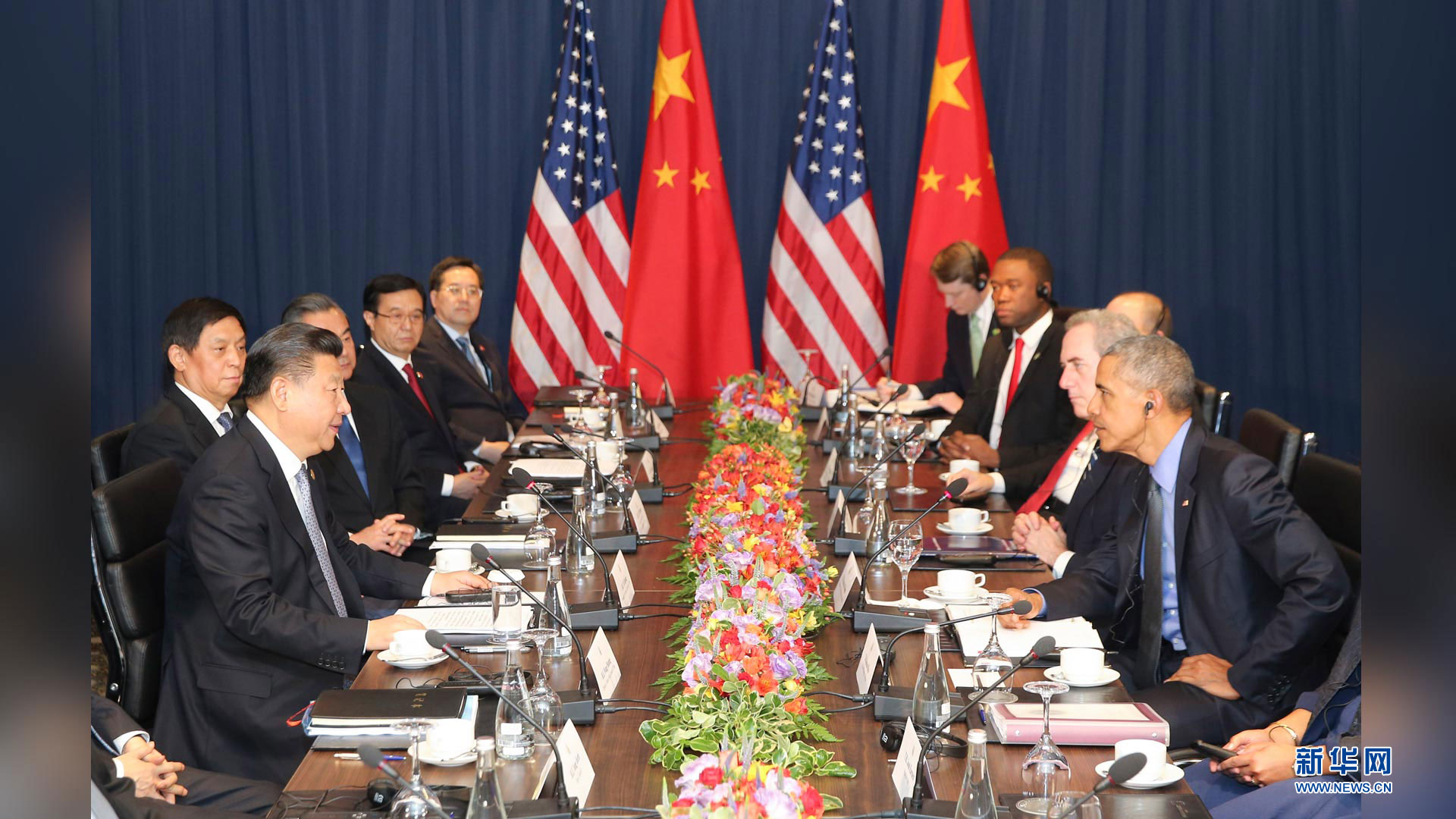 11月19日,國家主席習(xí)近平在利馬會見美國總統(tǒng)奧巴馬。 新華社記者蘭紅光 攝2016-11-20