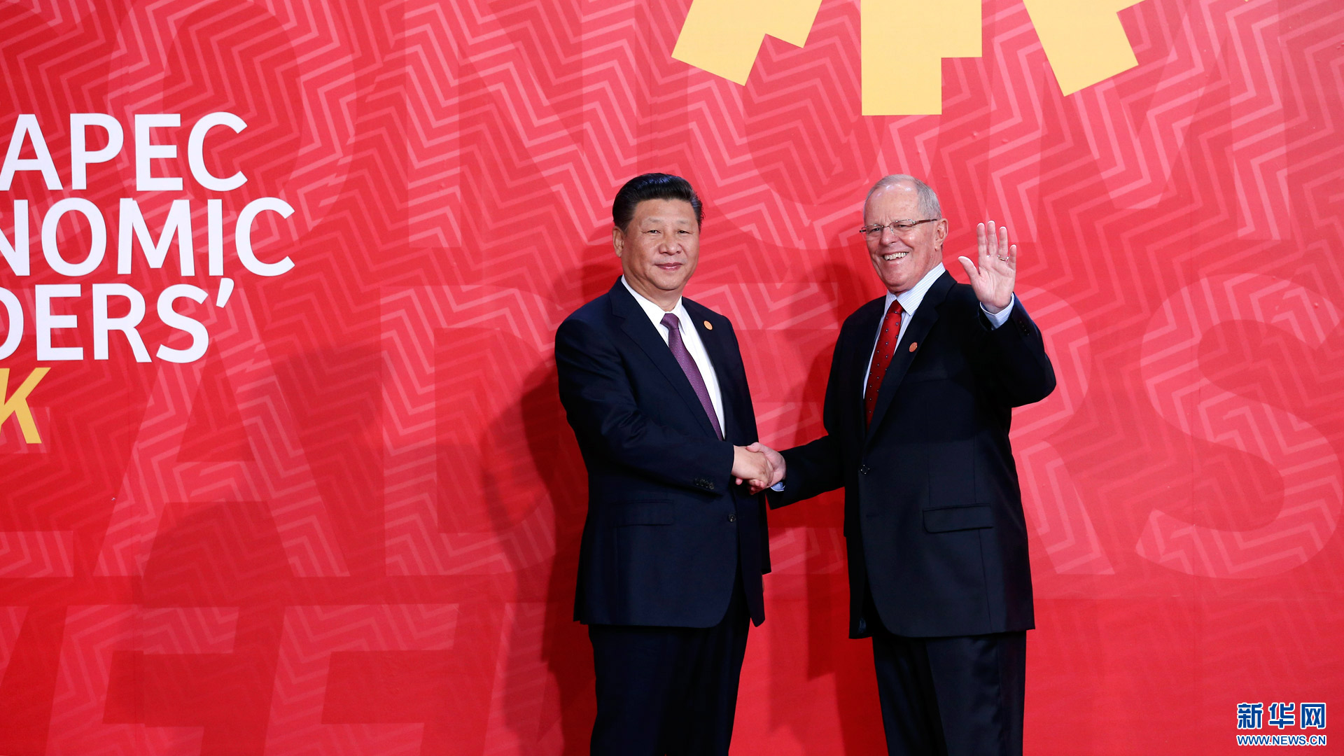 11月20日,亞太經(jīng)合組織第二十四次領(lǐng)導(dǎo)人非正式會議在秘魯利馬舉行。國家主席習(xí)近平出席并發(fā)表題為《面向未來開拓進取促進亞太發(fā)展繁榮》的重要講話。這是會議開始前,習(xí)近平受到秘魯總統(tǒng)庫琴斯基的熱情迎接。 新華社記者 龐興雷 攝2016-11-21