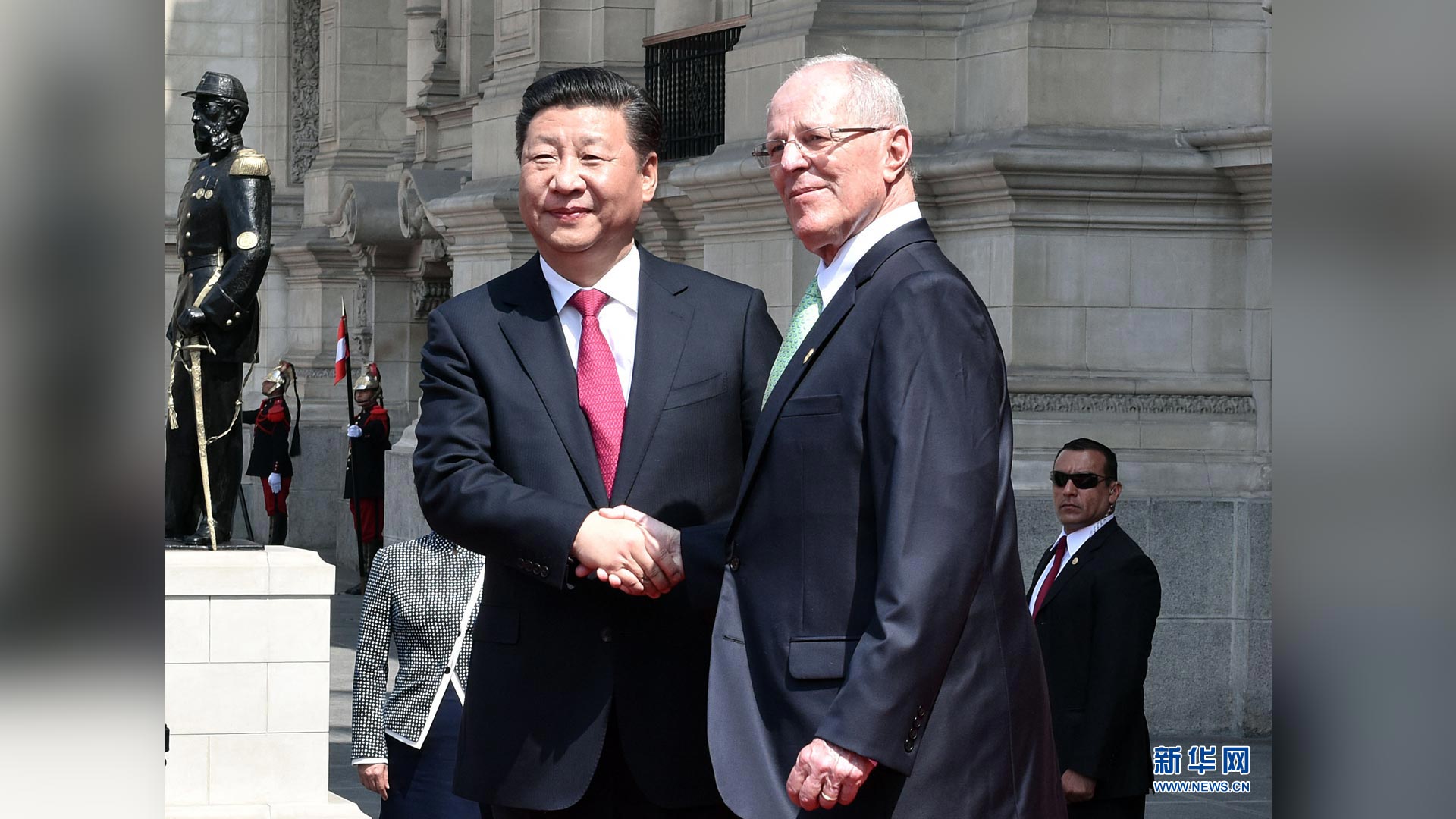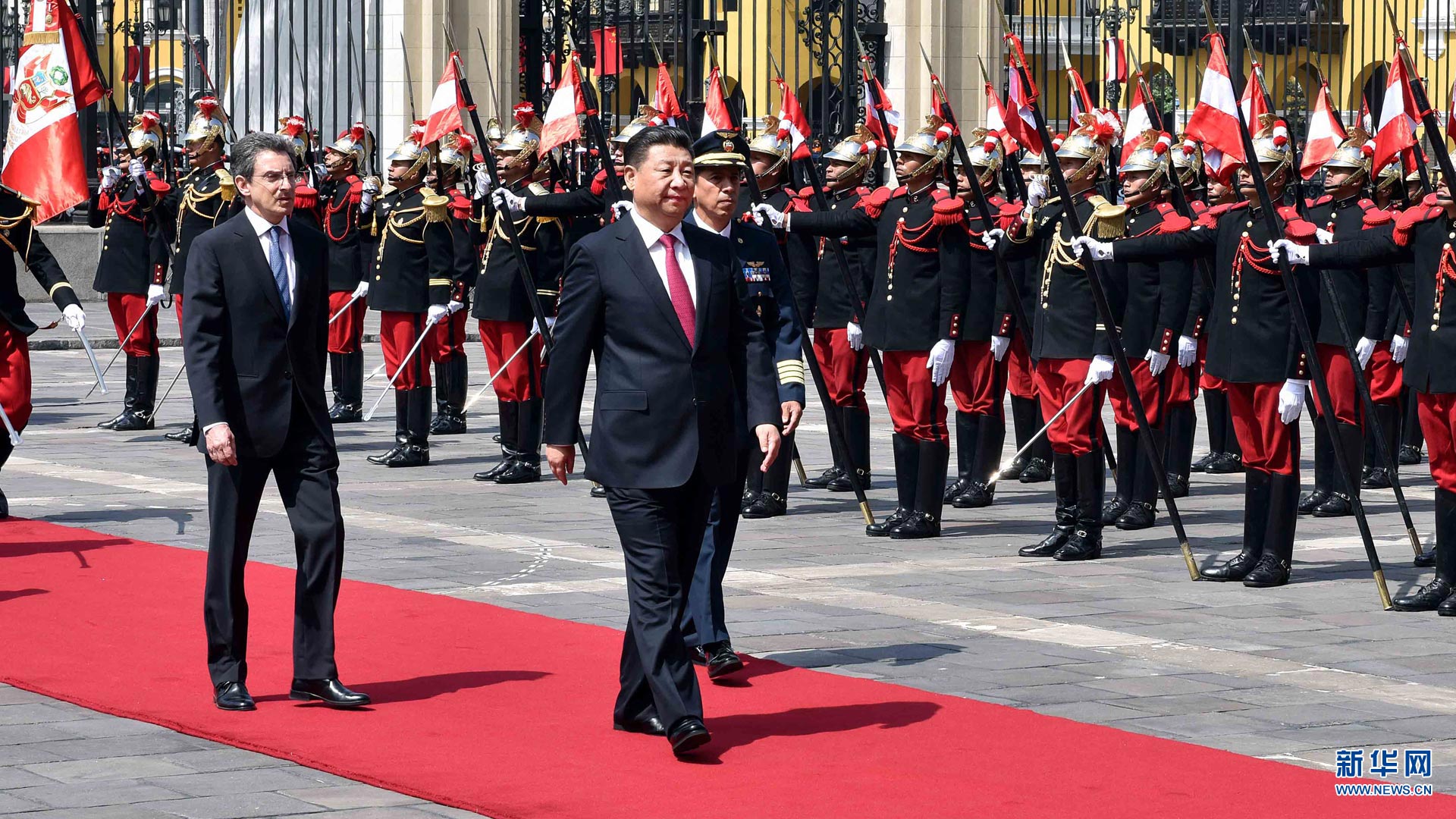 11月21日,國家主席習(xí)近平在利馬同秘魯總統(tǒng)庫琴斯基舉行會談。會談前,習(xí)近平出席庫琴斯基在總統(tǒng)府前廣場舉行的歡迎儀式。 新華社記者李濤 攝2016-11-23