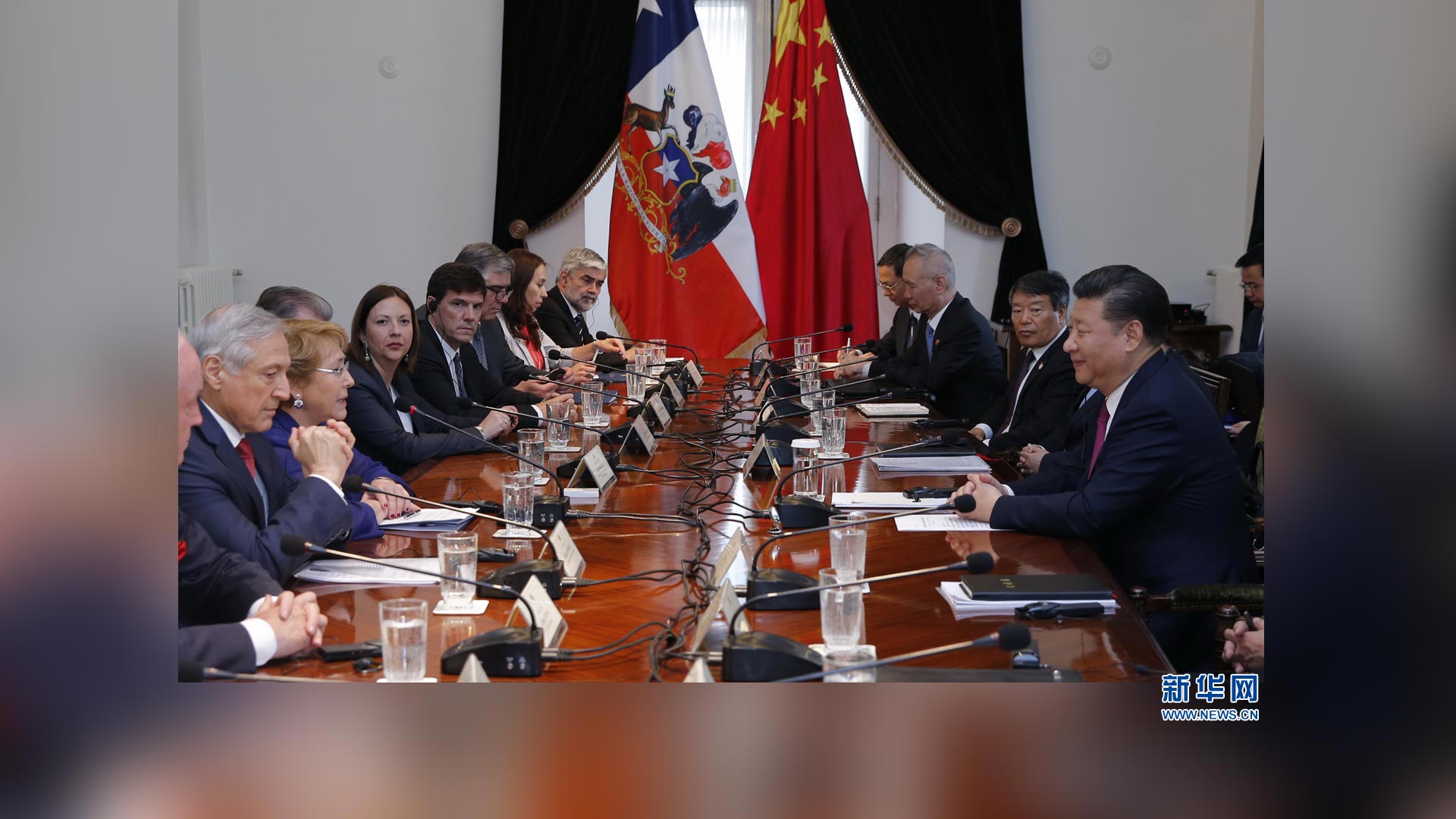 11月22日,國家主席習(xí)近平在圣地亞哥同智利總統(tǒng)巴切萊特舉行會談。 新華社記者 鞠鵬 攝2016-11-23
