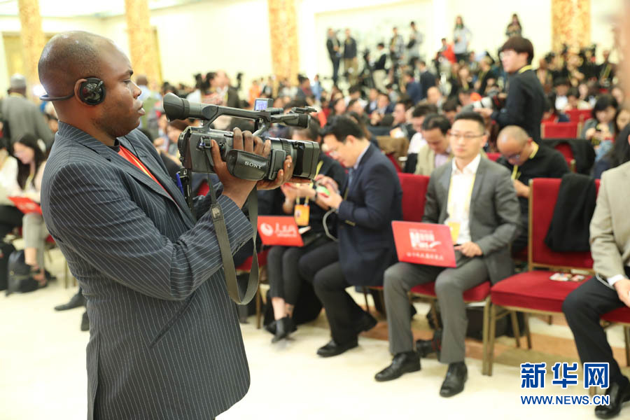 2017年10月17日下午,中國共產黨第十九次全國代表大會新聞發(fā)言人在人民大會堂三樓金色大廳舉行新聞發(fā)布會,并回答中外記者的提問。圖為外國記者在新聞發(fā)布會現(xiàn)場。新華網(wǎng) 翟子赫 攝
