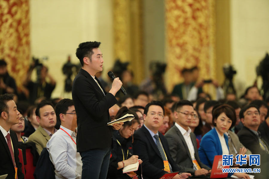 2017年10月17日下午,中國共產黨第十九次全國代表大會新聞發(fā)言人在人民大會堂三樓金色大廳舉行新聞發(fā)布會,并回答中外記者提問。圖為人民日報記者提問。新華網 翟子赫 攝