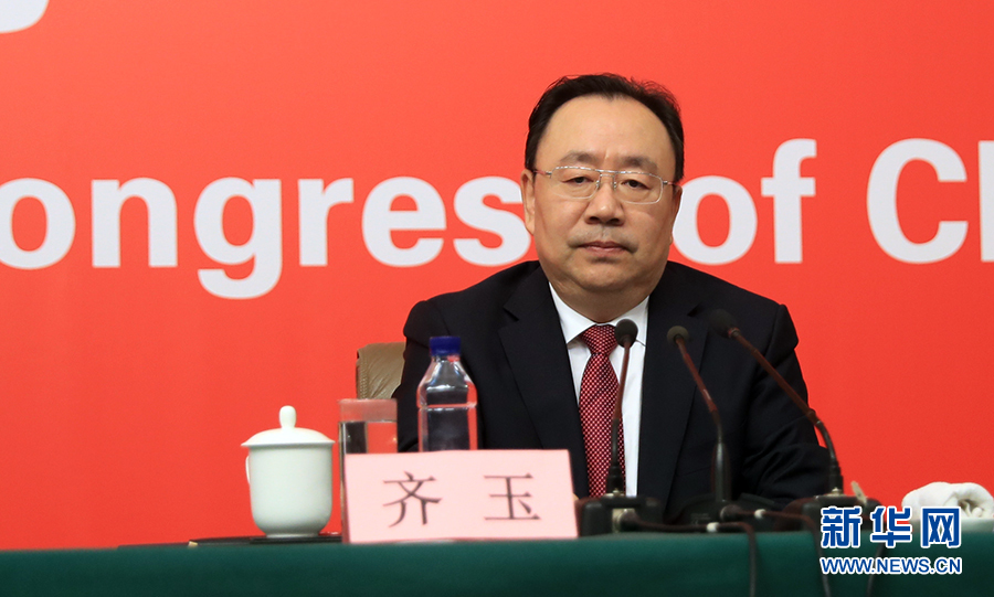 ??? 10月19日,十九大新聞中心舉行記者會,邀請中紀委、中組部負責人介紹黨的建設和全面從嚴治黨相關情況。圖為中共中央組織部副部長齊玉。新華網(wǎng) 郝廣鵬攝