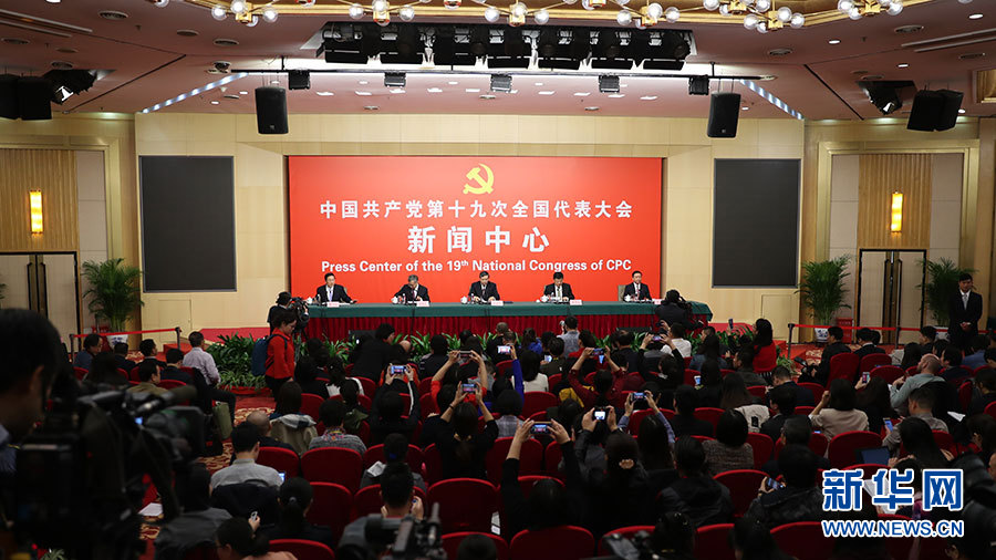 ??? 10月20日,十九大新聞中心舉行記者會,邀請中宣部、中央文明辦、文化部、新聞出版廣電總局相關(guān)負責人介紹加強思想道德和文化建設情況,并回答記者提問。圖為記者會現(xiàn)場。新華網(wǎng) 郝廣鵬 攝