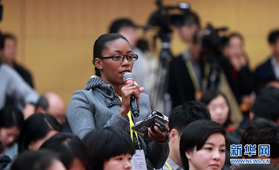 ??? 10月20日,十九大新聞中心舉行記者會,邀請中宣部、中央文明辦、文化部、新聞出版廣電總局相關負責人介紹加強思想道德和文化建設情況,并回答記者提問。圖為古巴拉美通訊社記者提問記者提問。新華網(wǎng) 郝廣鵬 攝