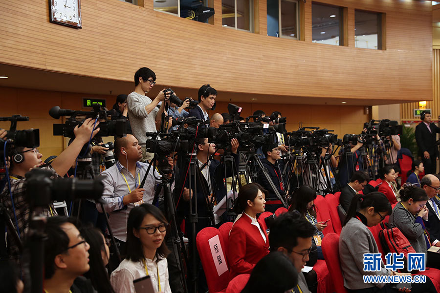 ??? 10月20日,十九大新聞中心舉辦集體采訪活動,主題為“文化發(fā)展開創(chuàng)新局面”。圖為現場記者。新華網 陳杰攝