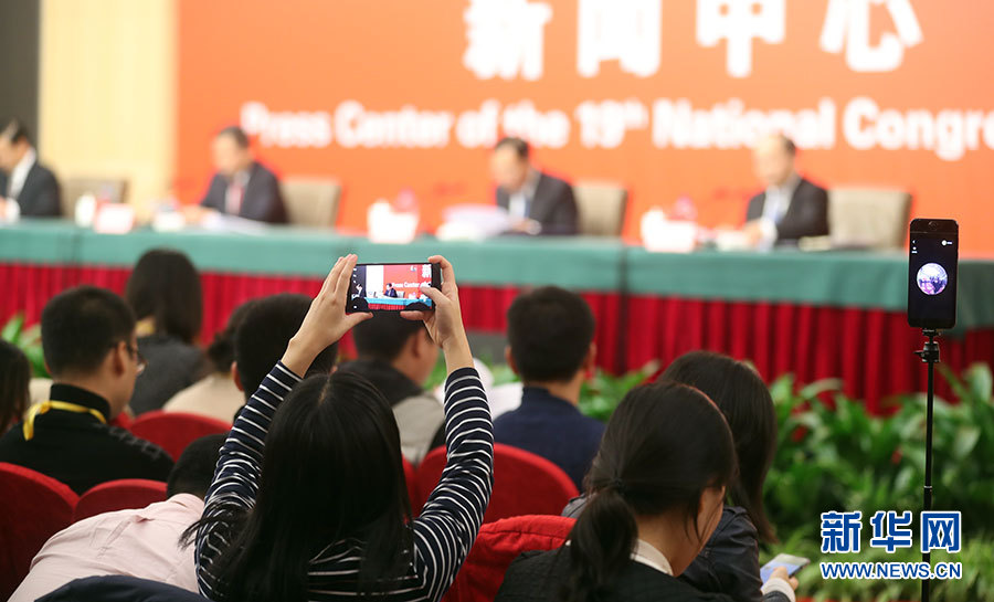 ??? 10月21日,十九大新聞中心舉辦記者招待會,邀請國家發(fā)展改革委黨組書記、主任何立峰,副主任張勇,副主任寧吉喆介紹以新發(fā)展理念為引領(lǐng),推進中國經(jīng)濟平穩(wěn)健康可持續(xù)發(fā)展有關(guān)情況,并回答記者提問。圖為記者招待會現(xiàn)場。新華網(wǎng) 郝廣鵬攝
