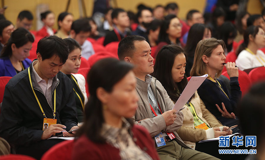 10月21日,十九大新聞中心舉辦集體采訪活動(dòng),主題為“農(nóng)業(yè)科技創(chuàng)新”。圖為現(xiàn)場(chǎng)記者。新華網(wǎng) 郝廣鵬攝