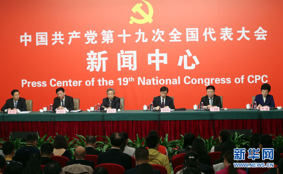10月22日,十九大新聞中心舉辦記者招待會(huì),邀請(qǐng)教育部黨組書記、部長(zhǎng)陳寶生,民政部黨組書記、部長(zhǎng)黃樹賢,人力資源社會(huì)保障部黨組書記、部長(zhǎng)尹蔚民,住房城鄉(xiāng)建設(shè)部黨組書記、部長(zhǎng)王蒙徽,國(guó)家衛(wèi)生計(jì)生委黨組書記、主任李斌介紹滿足人民新期待,保障改善民生有關(guān)情況,并回答記者提問。圖為記者招待會(huì)現(xiàn)場(chǎng)。新華網(wǎng) 郝廣鵬攝