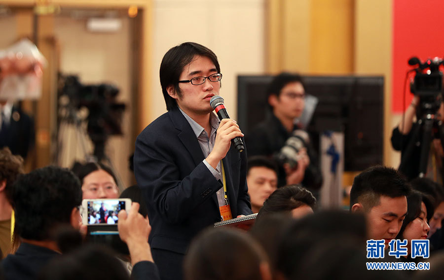 10月23日,十九大新聞中心舉辦記者招待會,邀請中央財經(jīng)領(lǐng)導(dǎo)小組辦公室副主任楊偉民,環(huán)境保護(hù)部黨組書記、部長李干杰介紹踐行綠色發(fā)展理念,建設(shè)美麗中國有關(guān)情況,并回答記者提問。圖為解放日報記者提問。新華網(wǎng) 郝廣鵬攝