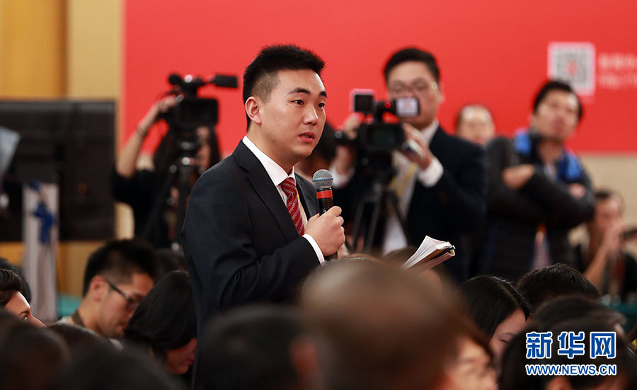 10月23日,十九大新聞中心舉辦記者招待會,邀請中央財經(jīng)領導小組辦公室副主任楊偉民,環(huán)境保護部黨組書記、部長李干杰介紹踐行綠色發(fā)展理念,建設美麗中國有關(guān)情況,并回答記者提問。圖為浙江衛(wèi)視記者提問。新華網(wǎng) 郝廣鵬攝