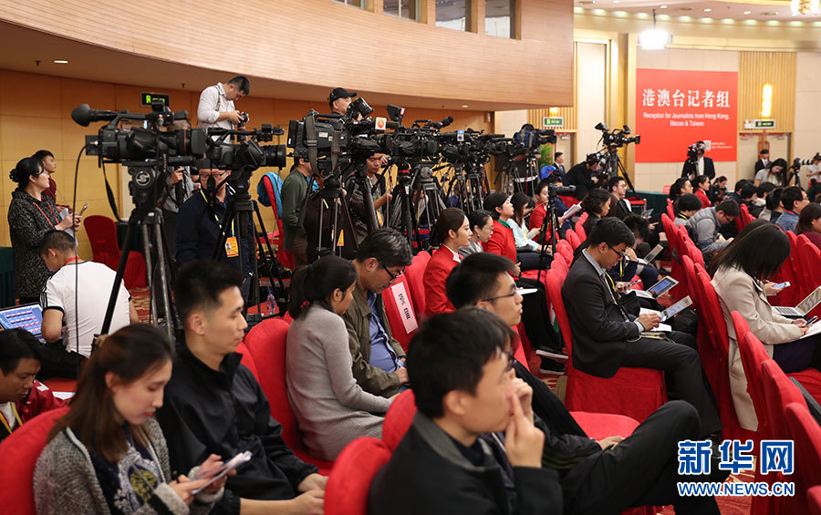 10月23日,十九大新聞中心舉辦集體采訪活動(dòng),主題為“打好生態(tài)環(huán)保攻堅(jiān)戰(zhàn)”。圖為現(xiàn)場(chǎng)記者。新華網(wǎng) 郝廣鵬攝