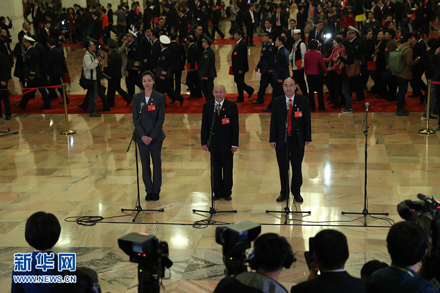 10月24日大會(huì)閉幕會(huì)后,人民大會(huì)堂舉辦“黨代表通道”第三場采訪活動(dòng)。圖為黨代表接受采訪。新華網(wǎng)記者 翟子赫 攝