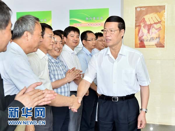 ????新華網(wǎng)北京6月5日電? 6月5日是世界環(huán)境日,中共中央政治局常委、國務(wù)院副總理張高麗上午到中國環(huán)境科學(xué)研究院和中國環(huán)境監(jiān)測(cè)總站調(diào)研環(huán)保科技工作,看望一線科技工作者,并主持召開院士專家座談會(huì)。他強(qiáng)調(diào),要認(rèn)真學(xué)習(xí)貫徹習(xí)近平總書記系列重要講話精神,堅(jiān)持環(huán)境保護(hù)基本國策,堅(jiān)持保護(hù)優(yōu)先,在保護(hù)中發(fā)展,在發(fā)展中保護(hù),以對(duì)人民群眾、對(duì)子孫后代高度負(fù)責(zé)的態(tài)度,科學(xué)系統(tǒng)謀劃推動(dòng)環(huán)保工作,堅(jiān)決向污染宣戰(zhàn),下決心把環(huán)境污染治理好、把生態(tài)環(huán)境建設(shè)好,推進(jìn)生產(chǎn)方式、生活方式和消費(fèi)模式的綠色轉(zhuǎn)型。