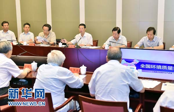 ??? 6月5日,中共中央政治局常委、國務(wù)院副總理張高麗到中國環(huán)境科學(xué)研究院和中國環(huán)境監(jiān)測(cè)總站調(diào)研。這是張高麗在院士專家座談會(huì)上發(fā)表講話。新華社記者 李濤 攝