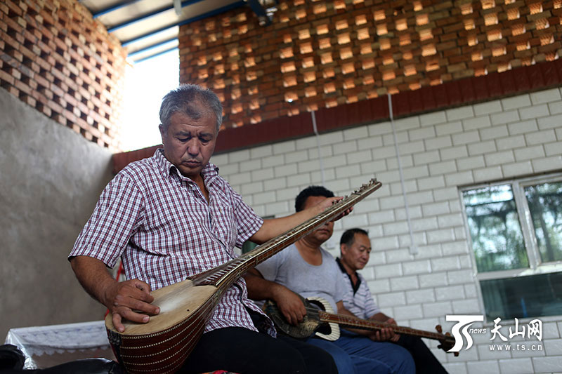 2013年以來,鄯善縣拿出資金,在全縣每個自然村建立農(nóng)民“文化大院”,給農(nóng)民提供文化娛樂的場所,十二木卡姆也自然成為大院里必備的節(jié)目,老藝人們忙碌了不少。最近正值齋月期間,村民間的文化活動照舊開展,蘇來曼 阿不都時常還要去周圍村里演出,最讓他高興的是,十二木卡姆這門古老的藝術(shù),在今天依舊被大家重視和喜愛,這一點對于他來說,比金錢更重要?!爸灰蠹疫€喜歡十二木卡姆,在平日里能見到它,它的傳承和發(fā)展就有不竭動力?!?蘇來曼 阿不都說。