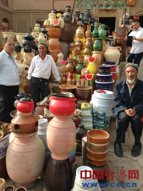 現(xiàn)年50歲的買買提?依明是一個土陶巴扎經(jīng)營者,說起這座老城的變化,他感慨萬千:“你們猜猜這個房子有多少年了”,記者們表示不知道,“300年了,我們家在這5代人哩”,買買提?依明說,原來的房子很小,巷子也很窄,家里開了個旅舍,人多的時候還要打地鋪,生意也不好。后來房屋改造,在自家原址上蓋了新房,全家人高興得不得了,自己花了15萬裝修,整修一新的房屋讓旅舍又紅紅火火的開了起來,大兒子大學(xué)畢業(yè)后已經(jīng)回來幫忙,小兒子還在重慶讀大學(xué)。依明說,當(dāng)初改造的時候政府讓我們選擇,可以搬出去住樓房,也可以留在這,街坊鄰居們很少有搬走的,現(xiàn)在我周圍還是那些老朋友。說起自己覺得裝修貴不貴,依明說:“政府花了那么多錢給我們蓋房子,我們自己花一點(diǎn)也是應(yīng)該的,感謝政府給我們這么好的生活?!?/p>