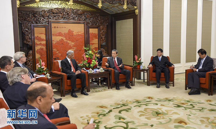 ?? 9月22日,中國國務(wù)院副總理馬凱在北京中南海紫光閣會(huì)見巴基斯坦前總理肖卡特·阿齊茲等參加中投公司國際咨詢委員會(huì)會(huì)議的委員。 新華社記者謝環(huán)馳 攝