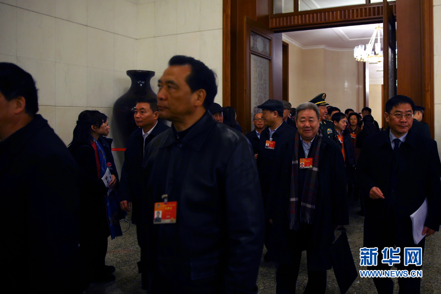列席十二屆全國人大三次會議開幕會的全國政協(xié)委員步入會場