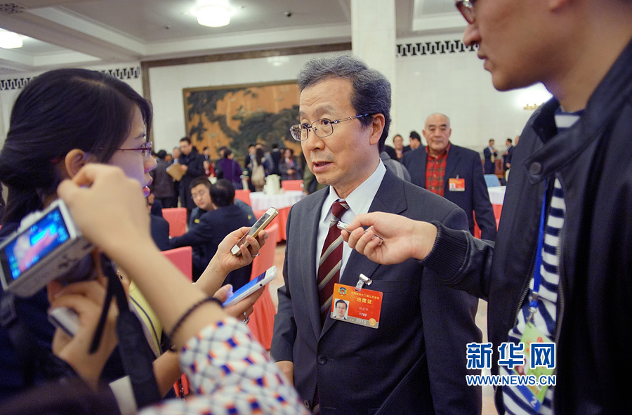 ????3月13日,全國(guó)政協(xié)十二屆三次會(huì)議在北京人民大會(huì)堂舉行閉幕會(huì)。圖為全國(guó)政協(xié)委員程永華接受記者采訪。新華網(wǎng)/中國(guó)政府網(wǎng)?翟子赫 攝