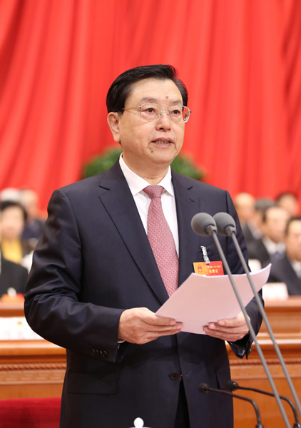 閉幕會由大會主席團常務(wù)主席、執(zhí)行主席、全國人大常委會委員長張德江主持。