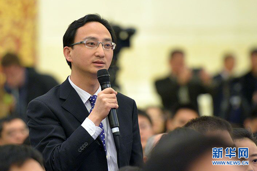????3月15日,國務院總理李克強在人民大會堂三樓金色大廳會見采訪十二屆全國人大三次會議的中外記者并回答記者提出的問題。圖為新華社、新華網(wǎng)和新華社發(fā)布客戶端記者提問。新華網(wǎng)/中國政府網(wǎng)?郭小天 攝