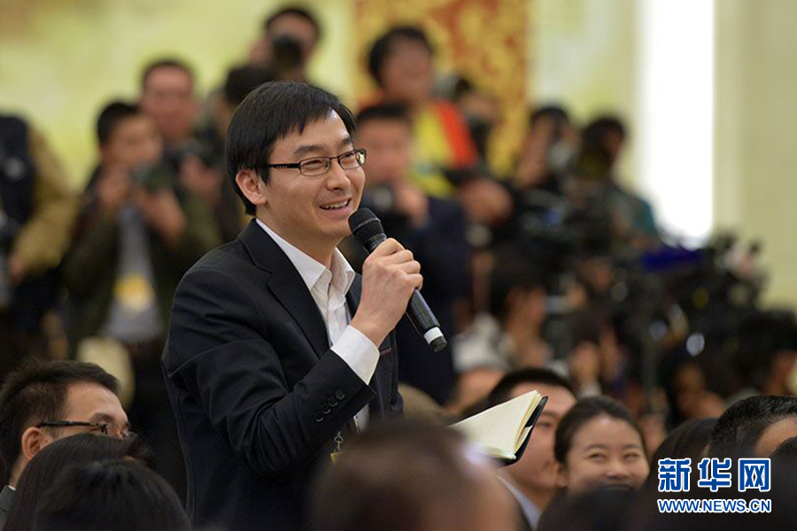 ????3月15日,國務(wù)院總理李克強(qiáng)在人民大會(huì)堂三樓金色大廳會(huì)見采訪十二屆全國人大三次會(huì)議的中外記者并回答記者提出的問題。圖為人民日報(bào)記者提問。新華網(wǎng)/中國政府網(wǎng)?郭小天 攝
