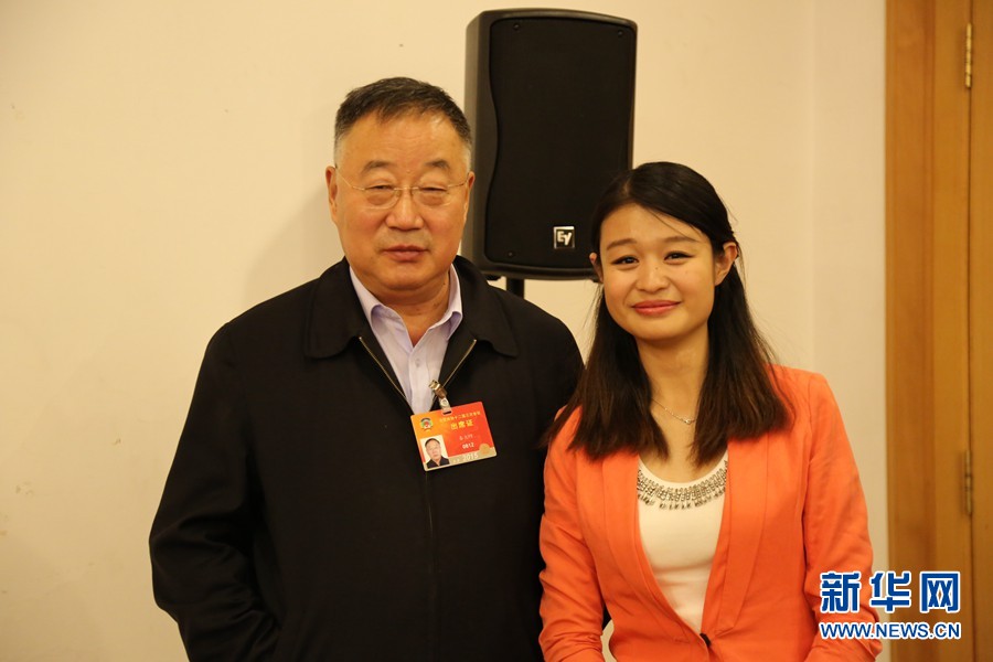 ????2015年3月15日,全國政協(xié)委員、中科院院士、氣象學會理事長秦大河做客新華網2015全國兩會特別訪談。圖為主持人與秦大河合影。
