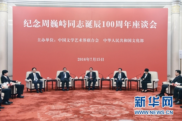 新華社北京7月15日電 紀(jì)念周巍峙同志誕辰100周年座談會7月15日在京舉行。中共中央政治局委員、中央書記處書記、中宣部部長劉奇葆出席座談會并講話。中國文聯(lián)主席孫家正出席。