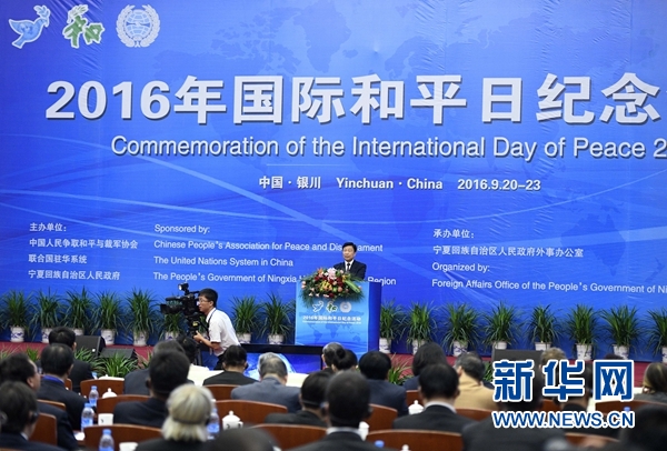 9月21日,2016年國(guó)際和平日紀(jì)念活動(dòng)在銀川開幕,國(guó)家副主席李源潮出席并致辭。 新華社記者 王鵬 攝