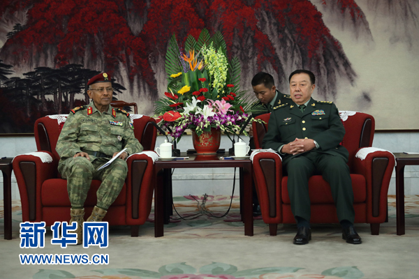 12月5日,中央軍委副主席范長(zhǎng)龍?jiān)诒本┌艘淮髽菚?huì)見(jiàn)來(lái)訪的吉布提軍隊(duì)總參謀長(zhǎng)扎卡里亞。 新華社記者 琚振華 攝