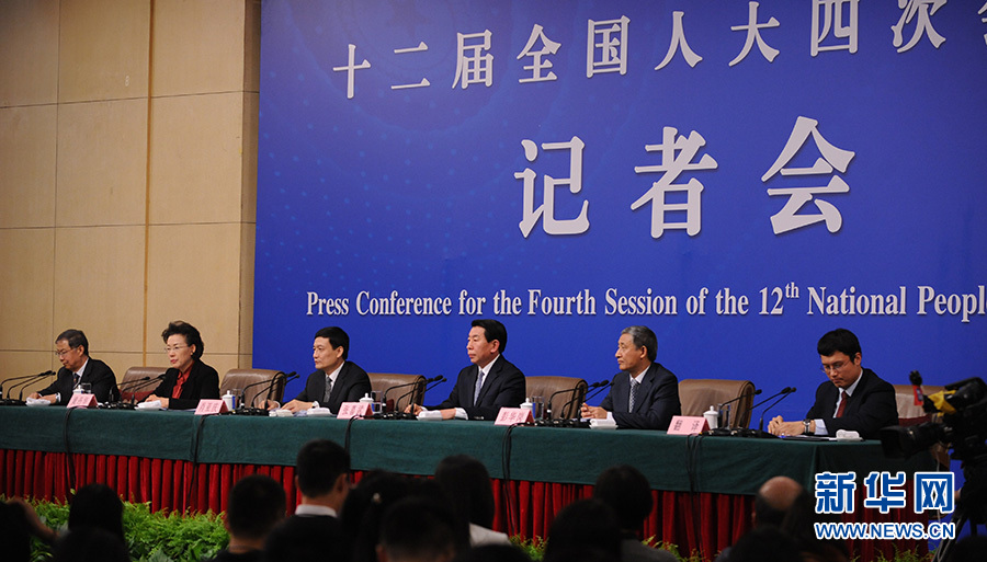 ?????十二屆全國人大四次會議新聞中心于3月12日(星期六)14時30分在梅地亞中心多功能廳舉行記者會,邀請國務院國有資產監(jiān)督管理委員會主任肖亞慶、副主任張喜武、副主任黃丹華和副秘書長、新聞發(fā)言人彭華崗就“國企改革”的相關問題回答中外記者的提問。圖為肖亞慶回答記者提問。新華網(wǎng)/中國政府網(wǎng) 陳杰 攝