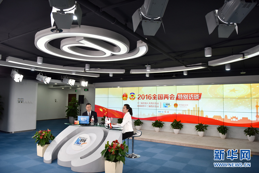 3月12日,全國人大代表,運城市市長王清憲做客新華網(wǎng)2016全國兩會特別訪談,與新華網(wǎng)網(wǎng)友在線交流。圖為王清憲在新華網(wǎng)直播間。新華網(wǎng) 付宇鵬 攝