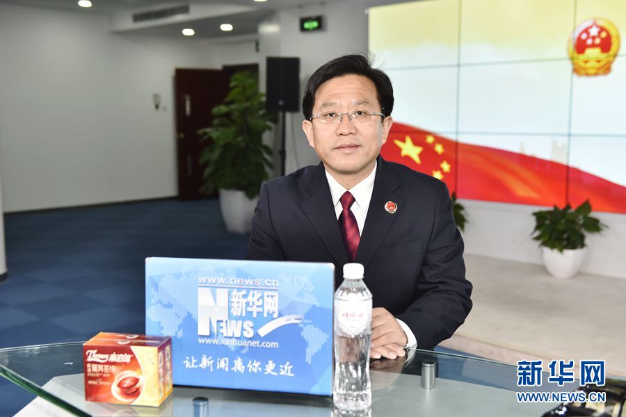 ??? 2016年3月13日,最高人民檢察院辦公廳主任、新聞辦主任王松苗做客新華網(wǎng)兩會(huì)訪談直播間。圖為王松苗在訪談現(xiàn)場(chǎng)。新華網(wǎng) 付宇鵬 攝