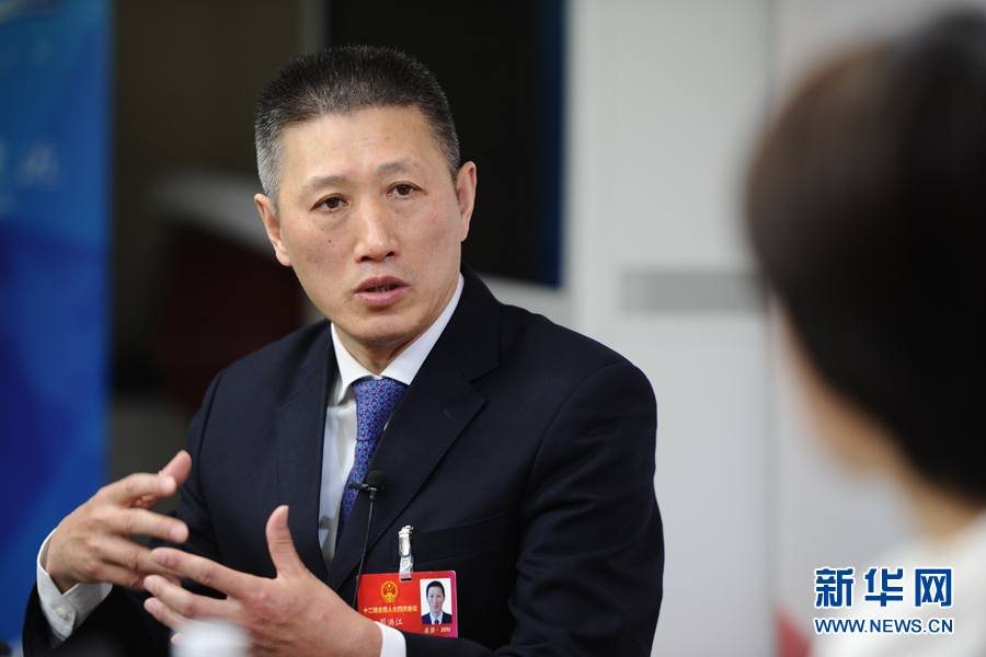 ??? 2016年3月13日,全國(guó)人大代表,煙臺(tái)張?jiān)F咸厌劸乒煞萦邢薰究偨?jīng)理周洪江做客新華網(wǎng)兩會(huì)訪談。圖為周洪江在訪談現(xiàn)場(chǎng)。新華網(wǎng) 盧志佳 攝