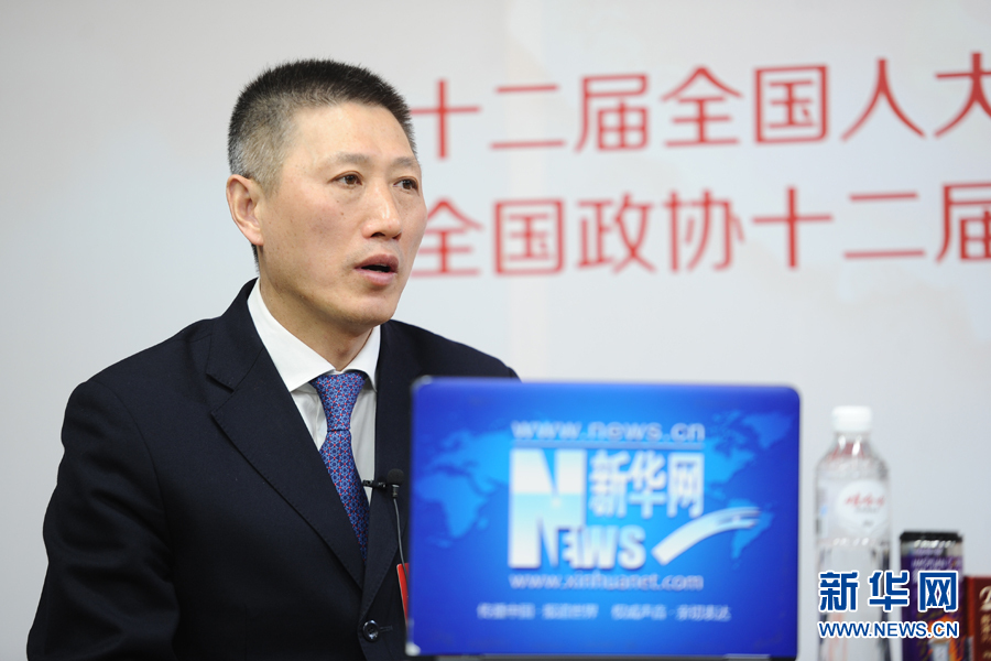 ??? 2016年3月13日,全國人大代表,煙臺張裕葡萄釀酒股份有限公司總經理周洪江做客新華網(wǎng)兩會訪談。圖為周洪江在訪談現(xiàn)場。新華網(wǎng) 盧志佳 攝