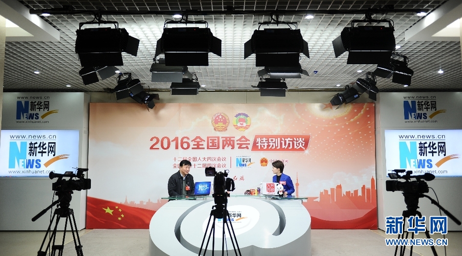 2016年3月14日,全國政協(xié)委員,天津達仁堂京萬紅藥業(yè)有限公司總經(jīng)理劉文偉做客新華網(wǎng)2016全國兩會特別訪談,與新華網(wǎng)網(wǎng)友在線交流。圖為訪談現(xiàn)場。新華網(wǎng) 賈海元 攝