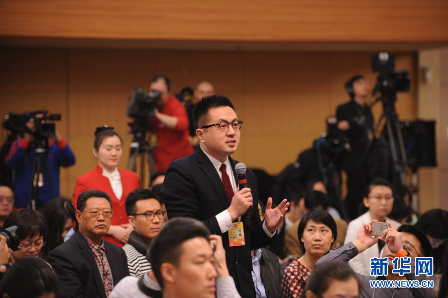 十二屆全國人大四次會議新聞中心于3月14日(星期一)10時在梅地亞中心多功能廳舉行記者會,邀請交通運輸部部長楊傳堂、交通運輸部運輸服務(wù)司司長劉小明、北京交通發(fā)展研究中心主任郭繼孚就“深化出租汽車改革與發(fā)展”的相關(guān)問題回答中外記者的提問。圖為中國網(wǎng)記者提問。新華網(wǎng)/中國政府網(wǎng) 陳杰 攝